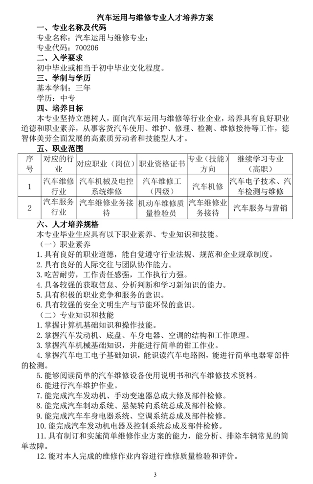 摘要:建平縣職教中心汽車運(yùn)用與維修專業(yè)人才培養(yǎng)方案 汽車運(yùn)用與維修專業(yè)人才培養(yǎng)方案 汽車運(yùn)用與維修專業(yè)人才培養(yǎng)方案 ?。ū疚膬?nèi)容由遼寧省建平縣職教中心督導(dǎo)室提供) 建平職教中心專屬園地 [編輯 立軍 編審 春語] 【本網(wǎng)聲明】
