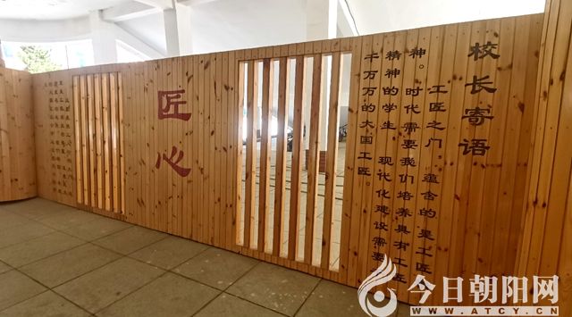 步入工匠廣場(chǎng),最先映入眼簾的是木質(zhì)結(jié)構(gòu)的匠心墻,“匠心”二字位于中央位置,兩側(cè)是張金波的寄語(yǔ),字里行間流露出的是他對(duì)學(xué)校每一位教師的殷切希望和每一位莘莘學(xué)子未來的期許。左右兩側(cè)最外面分別是古代馬車和現(xiàn)代機(jī)械的鏤空雕塑,展現(xiàn)出大國(guó)工匠對(duì)時(shí)代進(jìn)步和人類科技發(fā)展所做出的貢獻(xiàn)。