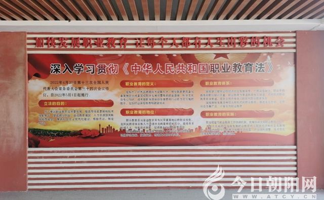 職業(yè)教育國(guó)家政策展示墻上的內(nèi)容緊跟國(guó)家職業(yè)教育政策法規(guī)腳步,從《國(guó)家職業(yè)教育改革實(shí)施方案》到《中華人民共和國(guó)職業(yè)教育法》,職業(yè)教育正沐浴春風(fēng),印證著墻面上方的那句話“加快發(fā)展職業(yè)教育,讓每個(gè)人都有人生出彩的機(jī)會(huì)”。建平縣職教中心的教育理念又何嘗不是如此呢?“人人能教育、人人能培養(yǎng)、人人能成才”表現(xiàn)出學(xué)校對(duì)學(xué)生的關(guān)愛、對(duì)家長(zhǎng)的負(fù)責(zé)、對(duì)職業(yè)教育的熱忱。
