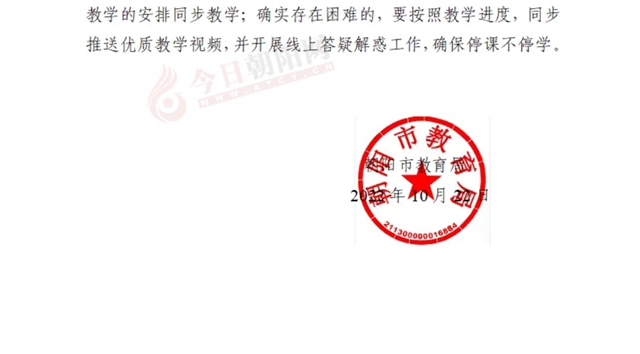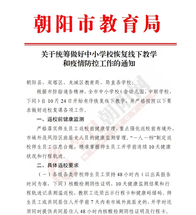 朝陽(yáng)市教育局重要通知:全市中小學(xué)校自10月24日開始有序恢復(fù)線下教學(xué)