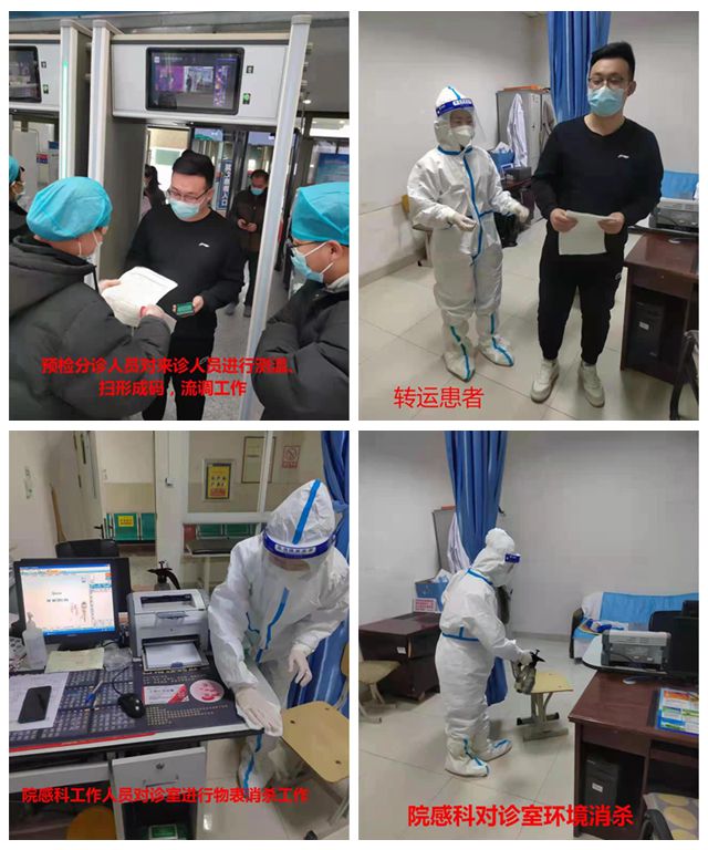 本次演練以某患者于外地返回,居家14天隔離,期間兩次核酸檢測結果陰性后,因胃部不適來醫(yī)院門診就診為背景。在歷經填寫《遼寧省醫(yī)療機構新冠病毒感染風險排查表》,預檢分診體溫檢測結果正常,掛號,分診等環(huán)節(jié)后到診室就診。經門診醫(yī)生再次進行流行病學調查,測量體溫發(fā)現體溫超過38℃,追問三日前有著涼病史,門診醫(yī)生果斷向門診周健主任電話匯報請求支援。隨即展開了門診主任聯系預檢分診人員在保安配合護送下轉運發(fā)熱病人至發(fā)熱門診,同時門診主任聯系院感科對病人經過的路線及到訪診室進行嚴格消殺工作。隨后門診醫(yī)生離開診室到指定位置進行手消毒,更換口罩,帽子及工作服等消毒工作。