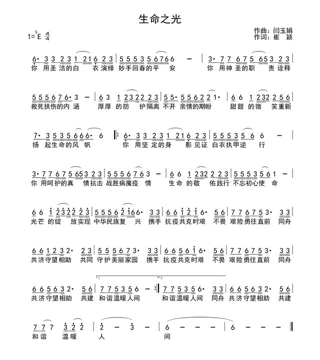 歌曲《生命之光》由崔穎作詞、閆玉娟作曲,聚焦抗擊疫情,致敬醫(yī)務(wù)工作者,弘揚(yáng)偉大抗疫精神,不忘初心使命,讓鮮艷的黨旗在疫情防控一線高高飄揚(yáng),全民攜手抗疫,共建美好家園。