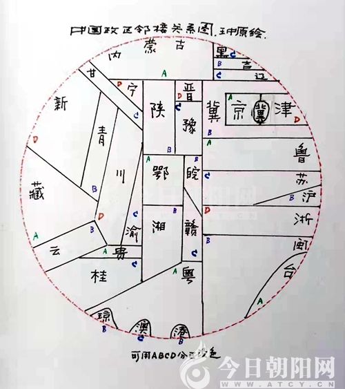 《中國政區(qū)鄰接關(guān)系圖》,既體現(xiàn)政區(qū)鄰接關(guān)系,也可以用來練習(xí)分區(qū)設(shè)色。