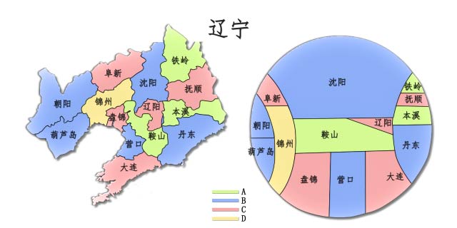 怎么樣?以簡(jiǎn)單的幾何圖形代替復(fù)雜的地圖形狀后,是不是非常輕易地就能把遼寧省地圖背下來(lái)了!