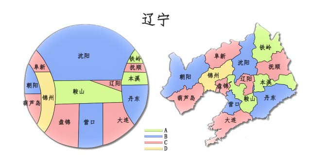 怎么樣?以簡(jiǎn)單的幾何圖形代替復(fù)雜的地圖形狀后,是不是非常輕易地就能把遼寧省地圖背下來(lái)了!