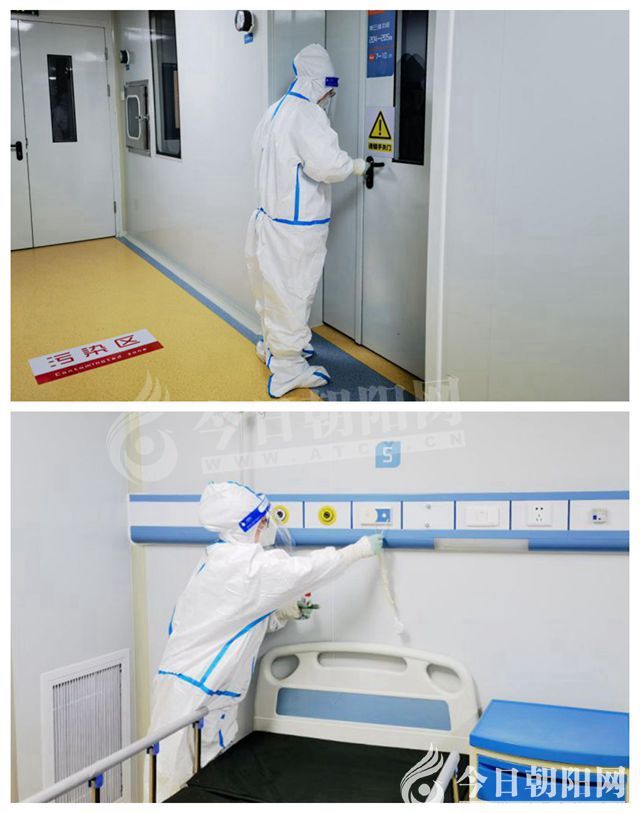 4月7日17時30分,經(jīng)市級醫(yī)療救治專家組的科學指導和我院的綜合診治,患者治愈出院返回北票市繼續(xù)健康監(jiān)測。這一刻,我們才意識到,竟然已經(jīng)過去了14天,沒有人喊苦喊累,不眠不休加班加點的工作,目的只有一個,患者安全治愈出院,醫(yī)務人員“零感染”?;颊叱鲈旱耐砩希t區(qū)人員用了近8個小時完成了終末消毒工作,消毒結束時,已經(jīng)是8日清晨。