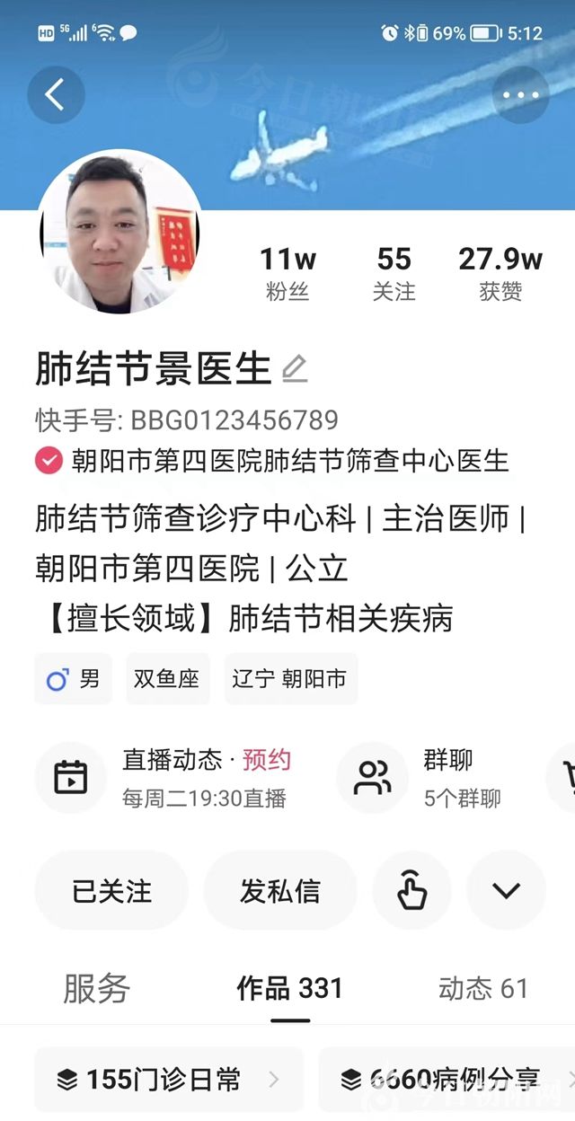 在張瑛院長的倡導(dǎo)下,朝陽四院的幾位年輕醫(yī)生也利用業(yè)余時間架起了手機開起了直播,通過短視頻平臺,利用所學(xué)的專業(yè)知識做起醫(yī)學(xué)科普。肺結(jié)節(jié)影像診斷門診主治醫(yī)師景冶,2021年5月在快手平臺注冊了“肺結(jié)節(jié)景醫(yī)生”個人帳號,迄今已發(fā)布作品331條,擁有11萬粉絲,獲贊27.9萬次,單條視頻瀏覽量最多的達(dá)到127萬次。通過短視頻平臺,景冶的醫(yī)學(xué)科普為網(wǎng)友們帶去了很多實用的醫(yī)學(xué)知識:肺結(jié)節(jié)的相關(guān)知識、科學(xué)防疫、健康生活常識等等。他表示,做醫(yī)學(xué)科普,有付出更有收獲,由于網(wǎng)友來自不同地區(qū),先進(jìn)儀器、前沿醫(yī)學(xué)知識都需要自己及時了解與掌握,這就迫使自己去不斷學(xué)習(xí)充電。他堅信張院長說的“互聯(lián)網(wǎng)就是一個大舞臺,要拼盡全力去做舞臺的主角,在衛(wèi)生健康服務(wù)領(lǐng)域貢獻(xiàn)自己的力量。”