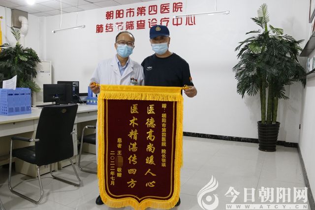 7月6日一早,黑龍江省牡丹江市的王先生冒雨來到遼寧省朝陽市第四醫(yī)院肺結(jié)節(jié)篩查診療中心,親手把繡著“醫(yī)德高尚暖人心,醫(yī)術(shù)精湛傳四方”幾個燙金大字的錦旗送到院長張瑛的手中,滿懷深情地表達(dá)了謝意。