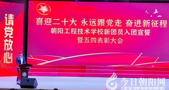 為紀(jì)念中國(guó)共產(chǎn)主義青年團(tuán)建團(tuán)100周年,5月4日,遼寧省朝陽(yáng)工程技術(shù)學(xué)校在報(bào)告廳舉辦了“喜迎二十大,永遠(yuǎn)跟黨走,奮進(jìn)新征程”2021——2022學(xué)年新團(tuán)員入團(tuán)宣誓暨五四表彰大會(huì)。黨委書(shū)記、校長(zhǎng)武鐵兵,副校長(zhǎng)陳塞月,黨辦主任李秀露、團(tuán)委書(shū)記武晶及各科室負(fù)責(zé)人出席會(huì)議,各年級(jí)新團(tuán)員、優(yōu)秀團(tuán)員代表及部分師生參加會(huì)議。