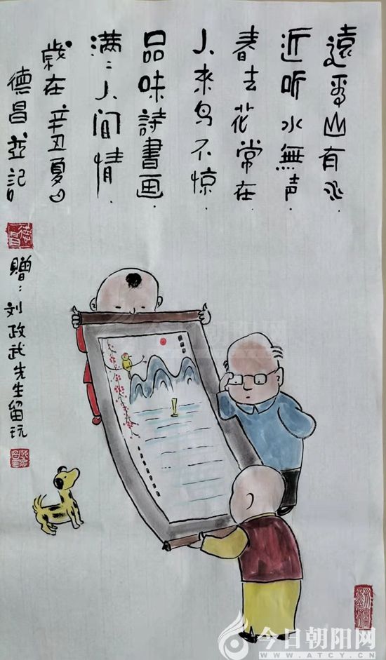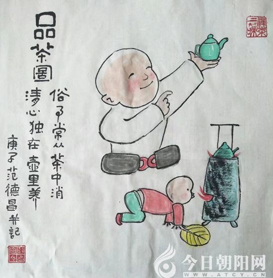 范德昌,今日朝陽網(wǎng)文化信使,1955年生于山東濰坊,自幼酷愛書畫?,F(xiàn)為山東省美術(shù)家協(xié)會會員,山東省漫畫協(xié)會理事兼副秘書長,漫畫人生指導老師,《婦女雜志》《女人觀天下》等報刊簽約畫家。30多年來,在全國160余家報刊發(fā)表作品6000余件,260余次獲獎。1994年至今,已岀版12本個人畫集。40多件作品被日本、韓國、新加坡和中國臺灣、香港的企業(yè)家及朋友收藏,被多家新聞媒體譽為扎根基層的民俗畫家,被評為“山東省百名讀書人物”和提名為“百名文化名人”。風格獨特、個性鮮明的水墨小品,貼近生活,寓教于樂,深受大眾喜愛。事跡和畫作被收編入《中國人才薈萃》、《二十一世紀人才庫》等8本辭書和傳記,18幅孝文化作品被收編于《銀齡書畫冊》。