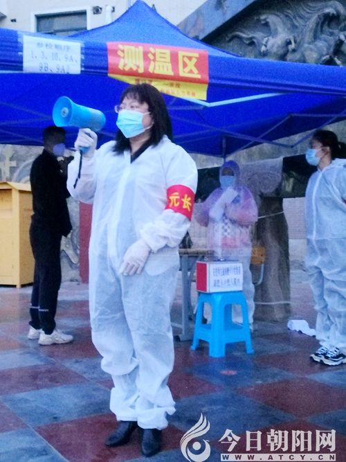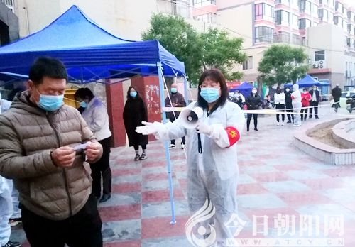 5月13日,早晨三點半起床洗漱完畢,四點準(zhǔn)時下樓,按照前一天晚上的預(yù)設(shè)有條理地進(jìn)行自己的工作。我不斷地用喇叭喊:“1號樓、3號樓、9A、9B……的居民請您馬上下樓做核酸采樣啦!”“請您從此處入場,然后向前走,左拐后一直往前走到登記處去登記,然后再左拐一直往前走,到核酸采樣處去掃碼、采樣,之后再左拐離開此處。” 發(fā)現(xiàn)人員密集了,我親切地說:“為了自己和他人的安全,請您間隔一米距離。”發(fā)現(xiàn)有的人逆行時,我急忙打趣地說:“這樣走容易撞車,請您這樣走,祝您一路順風(fēng)!”發(fā)現(xiàn)歲數(shù)大的老人和腿腳不方便的,我便急忙前去攙扶,把他們送到規(guī)定路線提前采樣……