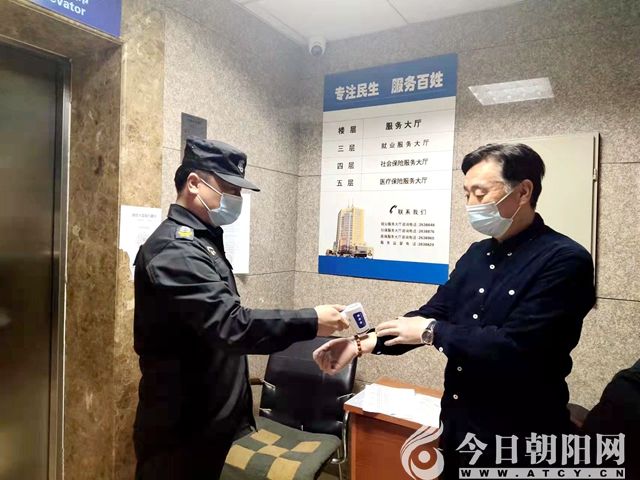 趙穎和褚云雪是大廈一樓大廳的兩名年輕保安員。疫情形勢變得嚴(yán)峻復(fù)雜后,她們每天都要穿著防護(hù)服,戴著手套、口罩上崗。為了避免麻煩,便選擇少喝水,以此來減少去廁所的次數(shù)。勞動大廈有醫(yī)保、社保等多個部門,每天接待前來辦理業(yè)務(wù)的人員2000余人,需要查驗每名來辦業(yè)務(wù)人員的行程碼、健康碼,完整登記個人身份信息,還要及時提醒所有進(jìn)出大廈人員佩戴好口罩。雖然工作繁雜,但她們始終保持高度的熱情和耐心,與人交流時語氣和善,伴著得體的肢體語言,讓人有如沐春風(fēng)的感覺。