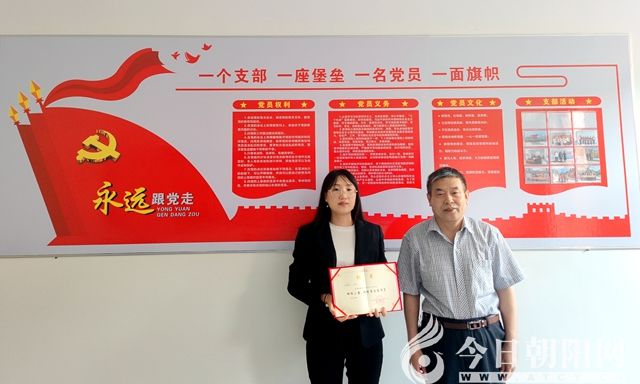 圖右為朝陽(yáng)市互聯(lián)網(wǎng)行業(yè)黨委委員、今日朝陽(yáng)黨支部書(shū)記楊廣大,圖左為劉雅賢