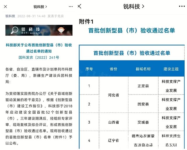 官宣!8月31日,科技部公布全國(guó)首批創(chuàng)新型縣(市)驗(yàn)收通過(guò)名單,遼寧省喀左縣榜上有名。榮獲國(guó)家創(chuàng)新型縣(市)殊榮。全國(guó)共有47個(gè)縣(市)通過(guò)驗(yàn)收,喀左縣為東北三省+內(nèi)蒙古自治區(qū)唯一縣。