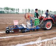 地膜如天邊的彩云,牢牢地鎖在壟脊,壟中埋下一枚枚太陽,溫暖如夏,禾苗迅速成長。