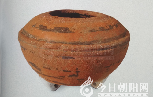 圖五:敖漢旗那珍溝遺址出土的三足彩陶斂口罐過(guò)去很少見(jiàn)到紅山文化的陶質(zhì)三足器。這件三足器為夾砂紅陶,底沿加三足當(dāng)為加溫所設(shè),又是斂口無(wú)頸,很顯然是加工液體所設(shè)。所夾的砂粒很細(xì),似經(jīng)過(guò)篩選后再加入。紅山文化的彩陶器多為泥質(zhì)陶。此三足陶器夾有細(xì)砂,完全從加溫的角度考慮。