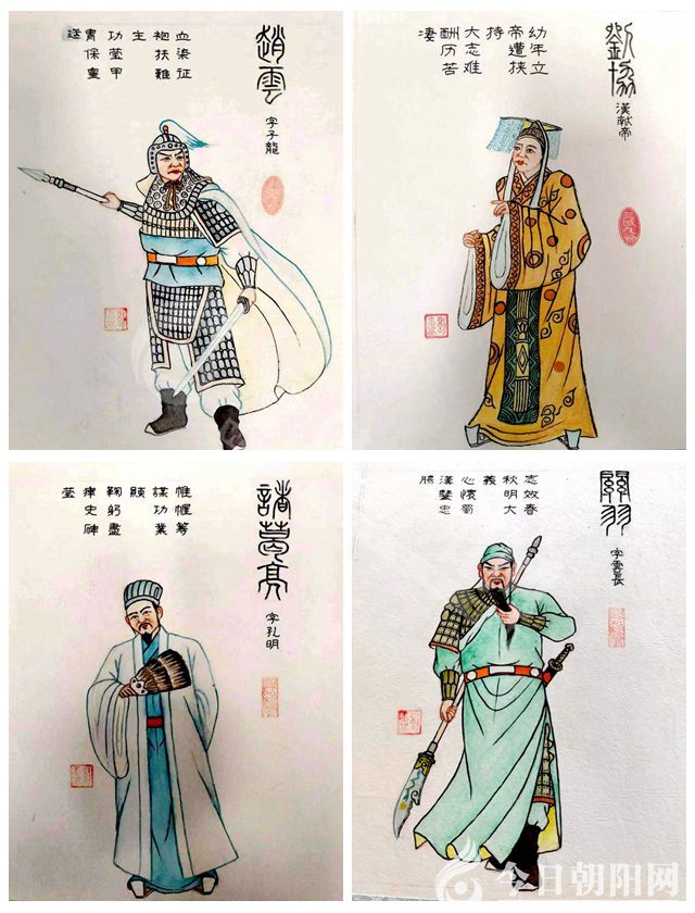 劉玉旻的舅舅是位農(nóng)民畫家,他從小受舅舅潛移默化的影響,非常喜歡畫畫。上學(xué)時酷愛圖畫課,繪畫成了他童年最大的樂趣?;謴?fù)高考后,他努力復(fù)習(xí)文化課,希望考入魯迅美術(shù)學(xué)院系統(tǒng)學(xué)習(xí)繪畫藝術(shù)。雖然未能如愿有些遺憾,但是劉玉旻并沒有放棄繪畫。特別是《三國演義》電視劇的熱播,一個個鮮活人物呼之欲出,令劉玉旻迫切地想把《三國演義》中的人物畫出來。為此,他查閱了大量有關(guān)三國人物的資料,尤其是《三國志》《三國演義》《三國史話》《后漢書》等名著,他捧在手中反復(fù)閱讀,潛心研究,揣摩人物,希望將《三國演義》群雄畫像呈現(xiàn)給人們。