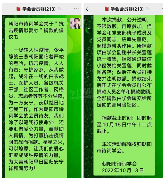 朝陽(yáng)市詩(shī)詞學(xué)會(huì):群中籌善款,戰(zhàn)“疫”顯擔(dān)當(dāng)!