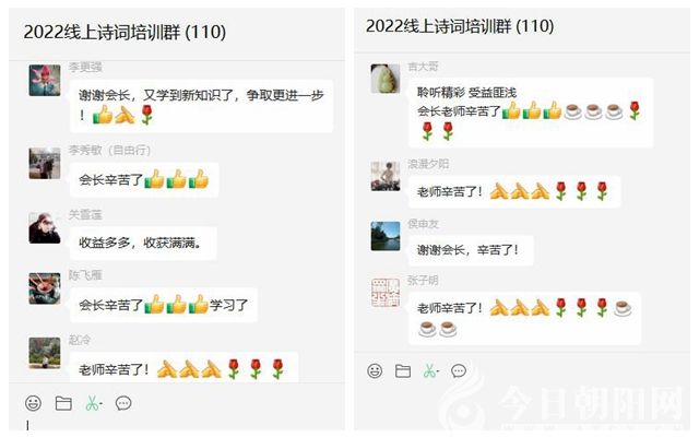 宿秀珍表示,此次培訓從一定意義上說,在助力朝陽抗疫、傳承優(yōu)秀傳統(tǒng)詩詞文化等方面將收到良好實效。希望大家多寫詩,寫好詩,以繁榮朝陽文化事業(yè)為己任,用高質量的詩詞作品來宣傳大美朝陽,歌頌偉大祖國。