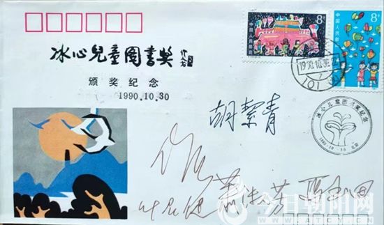 我拿著首日封在主席臺上,挨個讓領(lǐng)導(dǎo)們簽名。韓素音、胡絜青、吳作人、楊沬、馬玉田、葉君健、陳昊蘇、葉淑芳、吳全衡等為我簽下了珍貴的郵票首日封。隨后,我到離人民大會堂不遠的郵局,把首日封寄回我的家鄉(xiāng)朝陽。