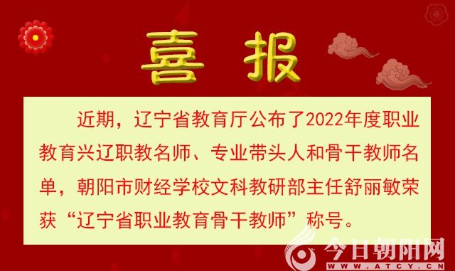 祝賀!市財校教師舒麗敏榮獲“遼寧省職業(yè)教育骨干教師”稱號