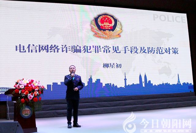 朝陽市公安局反詐中心支隊長柳星初以《電信網(wǎng)絡(luò)詐騙犯罪常見手段及防范對策》為題,為大家?guī)砹艘惶蒙鷦泳实姆丛p教育課。