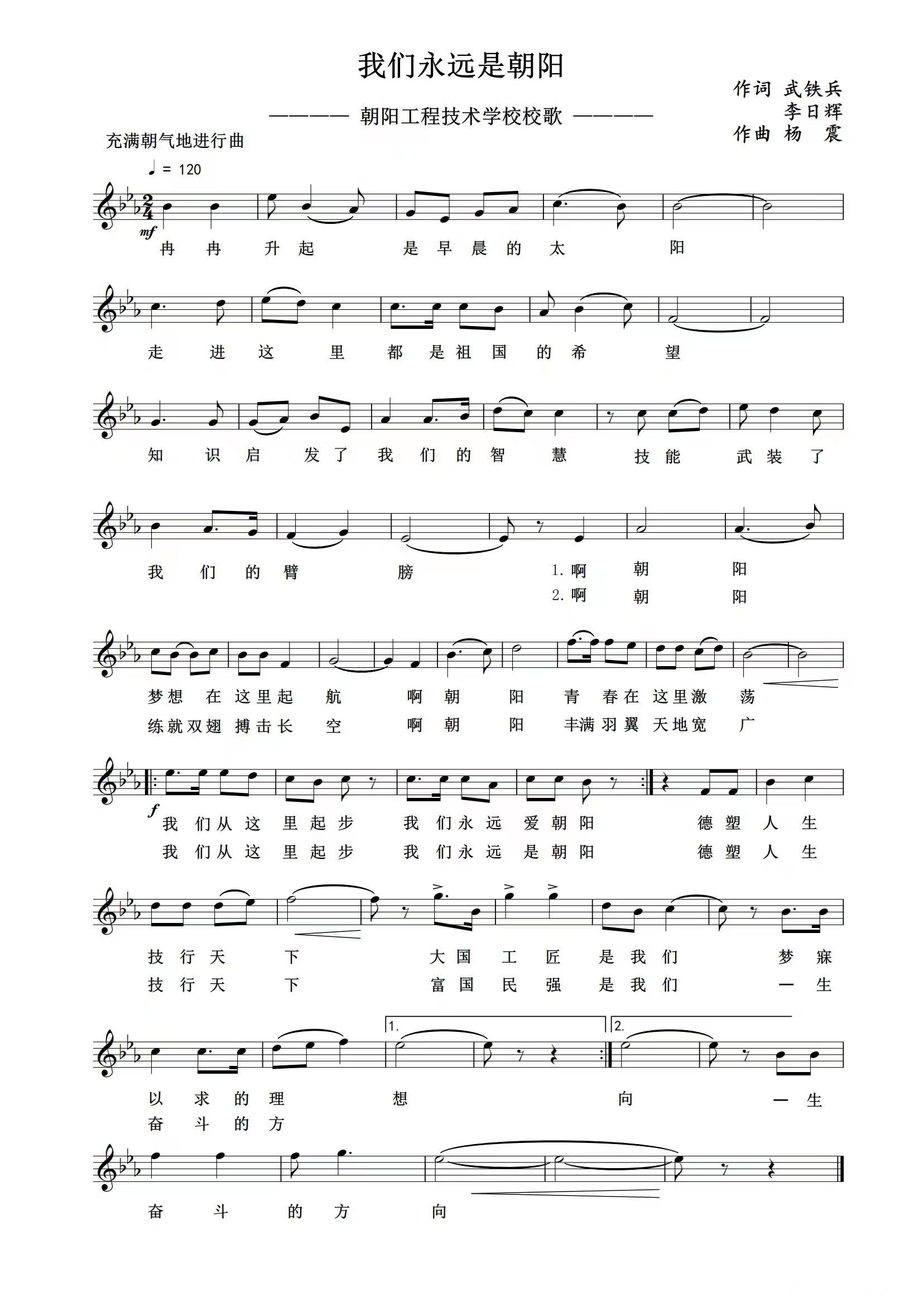 陽春三月,鮮花爛漫,歌聲飛揚(yáng)。為落實(shí)立德樹人根本任務(wù),充分發(fā)揮校歌的文化育人功能,展示學(xué)校豐厚的文化底蘊(yùn)和精神內(nèi)涵,激勵(lì)學(xué)生成長,凝聚學(xué)校精神,助推學(xué)校高質(zhì)量發(fā)展,3月30日下午,遼寧省朝陽工程技術(shù)學(xué)校在報(bào)告廳舉辦了校歌發(fā)布會(huì)。由學(xué)校黨委書記、校長武鐵兵,國家一級(jí)導(dǎo)演、朝陽體育舞蹈協(xié)會(huì)主席李日輝作詞,國家一級(jí)作曲家、空政歌舞團(tuán)楊震作曲的校歌《我們永遠(yuǎn)是朝陽》首次亮相。學(xué)校班子成員、師生代表參加發(fā)布會(huì)。
