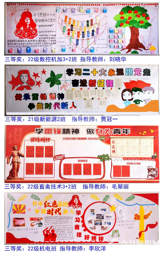 為深入貫徹落實(shí)習(xí)近平總書記關(guān)于弘揚(yáng)雷鋒精神的重要指示精神,4月12日下午,遼寧省朝陽工程技術(shù)學(xué)校團(tuán)委、學(xué)生科組織開展了“學(xué)習(xí)貫徹二十大,雷鋒精神志愿行”主題板報(bào)評(píng)比活動(dòng)。