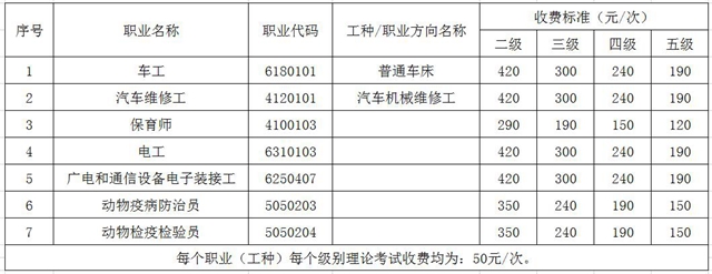 本著非營利性、成本補償?shù)脑瓌t,參考遼寧省發(fā)展和改革委員會、遼寧省財政廳《省發(fā)展改革委 省財政廳關(guān)于繼續(xù)執(zhí)行職業(yè)技能鑒定收費標準及有關(guān)事項的復函》(遼發(fā)改收費函【2020】109號)及現(xiàn)階段設備耗材市場價格,建平縣職業(yè)教育中心技能等級認定收費標準暫定如下(后期將結(jié)合經(jīng)濟發(fā)展、認定成本、物價指數(shù)等情況適當調(diào)整,并在網(wǎng)站公布):