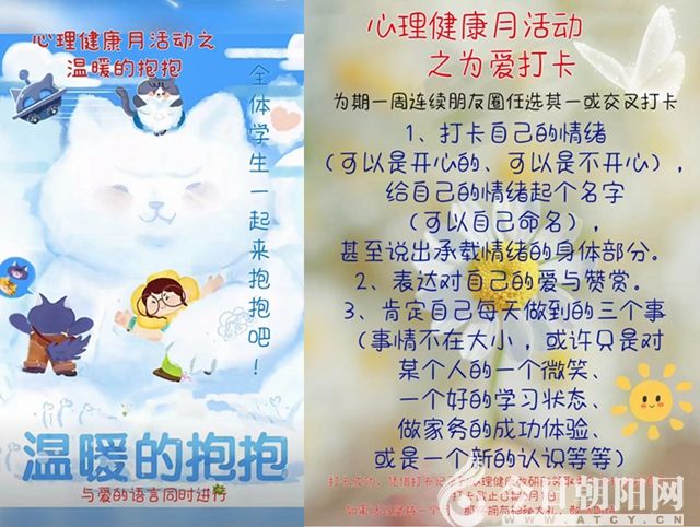 心理教研部還開展了溫暖的抱抱、為愛打卡等活動(dòng),鼓勵(lì)同學(xué)們勇敢表達(dá)愛,釋放心里的溫暖,感染自己、感染他人。