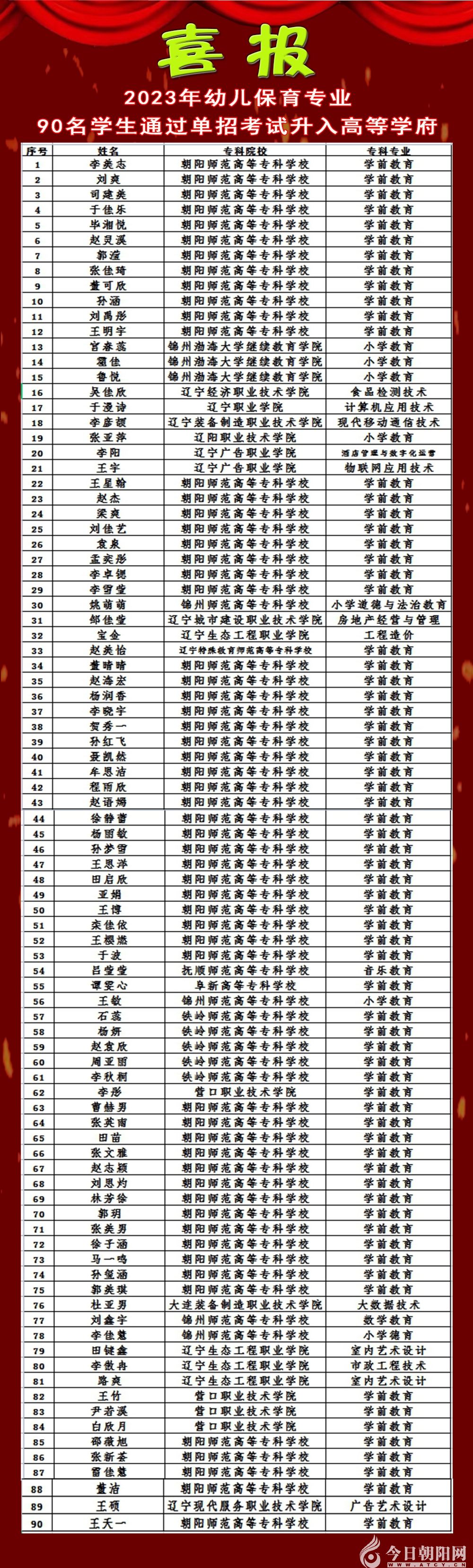 遼寧省朝陽市財經學校幼兒保育專業(yè)(原學前教育專業(yè)),是省級示范專業(yè),也是學校主打的特色專業(yè)。2021年被評為遼寧省中等職業(yè)學校優(yōu)質專業(yè)A類。其前身是朝陽市職業(yè)高中藝術幼師專業(yè),朝陽市第一支幼教隊伍從這里誕生。該專業(yè)成立40年來,培養(yǎng)優(yōu)秀幼教人才4000余人,為朝陽市學前教育領域輸送了大量復合型專業(yè)人才。據不完全統(tǒng)計,該校幼兒保育專業(yè)畢業(yè)生幾乎遍布全市各幼兒園,撐起了朝陽市幼兒教育的半邊天。