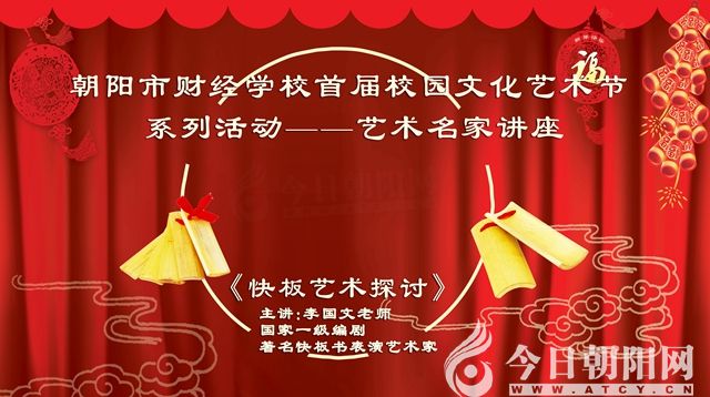6月20日上午,遼寧省朝陽市財經(jīng)學校首屆校園文化藝術節(jié)系列活動——藝術名家講座在該校六樓報告廳舉行?;顒友垏乙患壘巹?、著名快板書表演藝術家李國文老師主講。朝陽市作協(xié)副主席、國家一級作家李學英出席。副校長寶振祥代表校領導全程陪同。