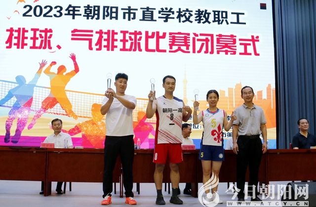 7月26日下午,由遼寧省朝陽(yáng)市教育局主辦,朝陽(yáng)市財(cái)經(jīng)學(xué)校、朝陽(yáng)市第一高級(jí)中學(xué)承辦的2023年朝陽(yáng)市直學(xué)校教職工排球、氣排球比賽,在市財(cái)校體藝館圓滿落下帷幕。經(jīng)過(guò)三天的激烈比拼,市財(cái)校女子氣排球隊(duì)、男子排球隊(duì)?wèi){借出色表現(xiàn)脫穎而出,分別獲得冠軍和第四名的好成績(jī),學(xué)校榮獲特殊貢獻(xiàn)獎(jiǎng)。