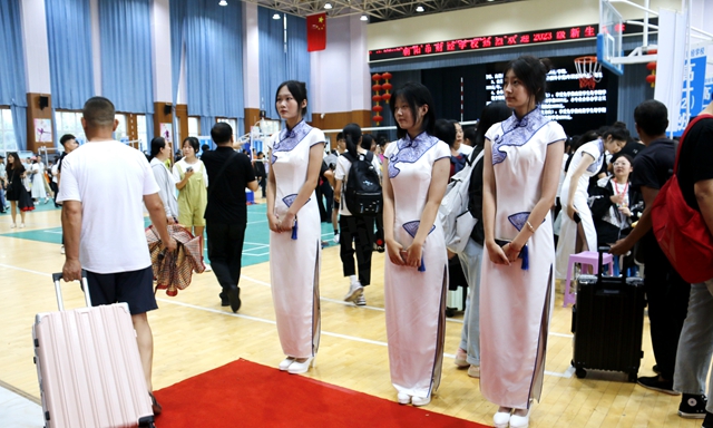 迎賓人員身穿禮服,滿面春風(fēng);志愿者掛著胸牌,笑容可掬,熱情周到。他們穿梭在人流中,領(lǐng)路、搬運(yùn)行李、講解入學(xué)流程;學(xué)校領(lǐng)導(dǎo)現(xiàn)場(chǎng)檢查指導(dǎo),開(kāi)學(xué)工作安全、有序、順利開(kāi)展。