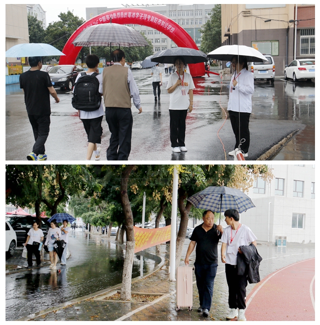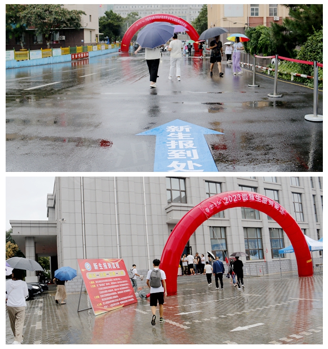 一場(chǎng)雨不期而至,但這沒(méi)有影響迎新工作的正常開(kāi)展。迎新工作人員、志愿者各就各位,隨著新生的陸續(xù)到來(lái),校園處處演繹著溫情序曲。