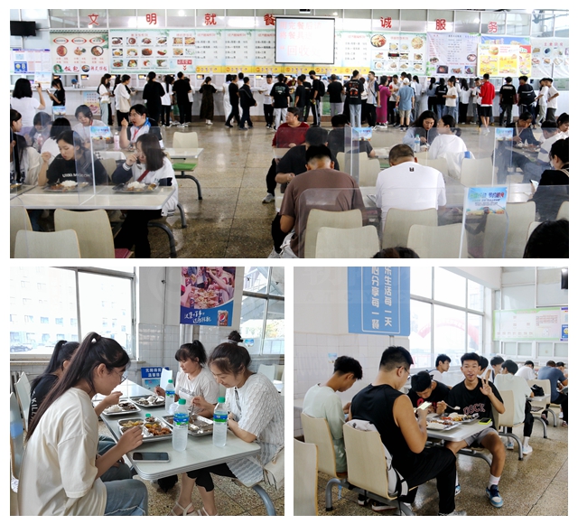 中午,學(xué)校為新生及家長(zhǎng)準(zhǔn)備了美味的飯菜。坐在寬敞整潔的食堂,品嘗著可口的飯菜,體味著家的溫馨,新生及家長(zhǎng)的臉上露出滿意的微笑。