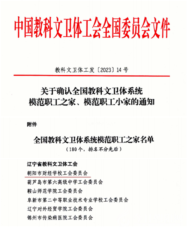 喜訊!朝陽市財經(jīng)學(xué)校工會委員會榮獲“全國教科文衛(wèi)體系統(tǒng)模范職工之家”稱號