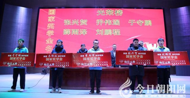 馮繼軒宣讀了《朝陽(yáng)工程技術(shù)學(xué)校2022-2023學(xué)年國(guó)家獎(jiǎng)學(xué)金獲得者名單》,于守鵬、張興賀、喬偉涵、薛雨澤、劉鵬程5名學(xué)生獲得國(guó)家獎(jiǎng)學(xué)金。