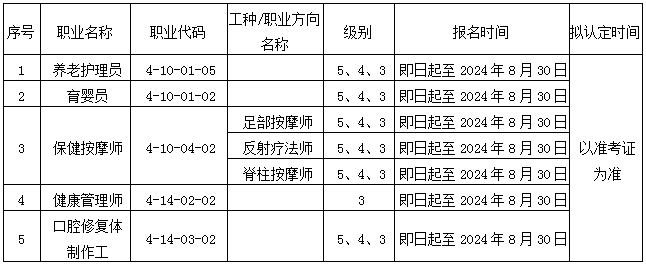 根據(jù)遼寧省人力資源和社會保障廳《關(guān)于做好遼寧省職業(yè)技能等級認定社會培訓評價組織遴選技術(shù)評估工作的通知》(遼人社函〔2021〕53號)和遼寧省人力資源和社會保障廳《關(guān)于同意朝陽市衛(wèi)生學校開展職業(yè)技能等級認定工作的函》文件精神,結(jié)合社會服務需求,朝陽市衛(wèi)生學校擬開展育嬰員、養(yǎng)老護理員、保健按摩師、健康管理師、口腔修復體制作工5個職業(yè)工種技能等級認定工作,現(xiàn)將有關(guān)事項公告如下: