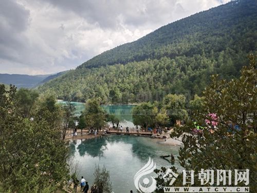 下一站藍(lán)月谷。藍(lán)是因?yàn)樗杏械V物質(zhì),月是因?yàn)樯焦瘸试卵罓睢K{(lán)月谷的水真藍(lán)啊。清可見(jiàn)底的那種藍(lán)。這種藍(lán)中帶著一種神秘感。導(dǎo)游告訴我們來(lái)到藍(lán)月谷要用藍(lán)月谷里的水洗洗手,我們特意讓手在水中多感受了一會(huì)兒那水的清涼。接近大自然,融入大自然就是這么神奇,很自然地就會(huì)讓人放松心情。