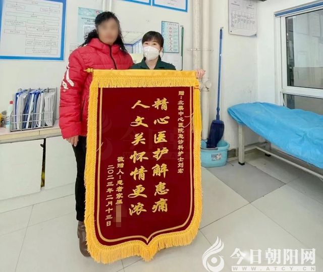 2月13日上午,在遼寧省北票市中心醫(yī)院發(fā)生感人的一幕,患者家屬手捧錦旗,當(dāng)面感謝了拾金不昧的急救中心護士劉宏。