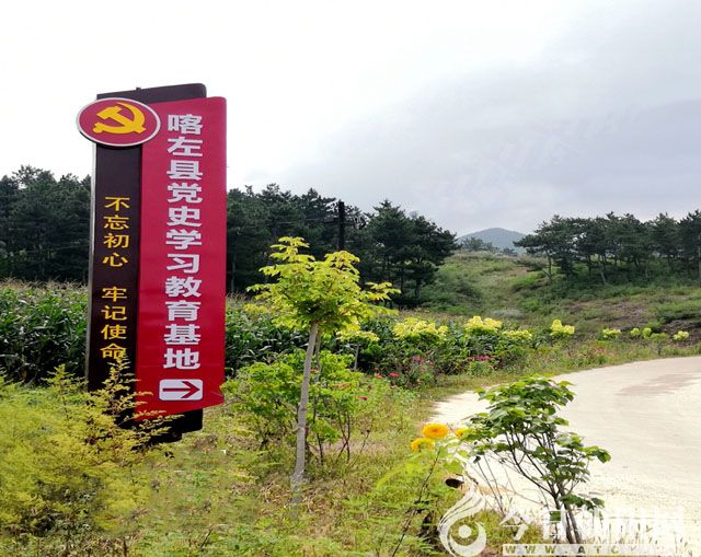 細雨如霧,絲絲縷縷,籠罩著九月的桃(花池)四(合當)公路。山河潑綠,村莊隱現(xiàn),泥土芬芳撲進車窗,灑滿我和妻子的襟懷。開車從大連回喀左縣山嘴子鎮(zhèn)省親,想起網(wǎng)紅地——馬家溝,于是過家門而不入,沿鎮(zhèn)東公交車站小橋邊的黨旗雕塑指示牌左轉(zhuǎn),直奔“喀左縣黨史學(xué)習(xí)教育基地”,過村莊,穿鐵路橋,進臥虎溝村,格桑花、向日葵、萬壽菊夾道綻放,花香醉得蜂蝶披雨忙碌,堪比忙秋的父老鄉(xiāng)親。