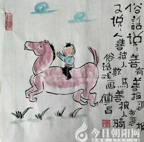范德昌,今日朝陽網(wǎng)文化信使,1955年生于山東濰坊,自幼酷愛書畫?,F(xiàn)為山東省美術(shù)家協(xié)會(huì)會(huì)員,山東省漫畫協(xié)會(huì)理事兼副秘書長(zhǎng),漫畫人生指導(dǎo)老師,《婦女雜志》《女人觀天下》等報(bào)刊簽約畫家。30多年來,在全國160余家報(bào)刊發(fā)表作品6000余件,260余次獲獎(jiǎng)。1994年至今,已岀版12本個(gè)人畫集。40多件作品被日本、韓國、新加坡和中國臺(tái)灣、香港的企業(yè)家及朋友收藏,被多家新聞媒體譽(yù)為扎根基層的民俗畫家,被評(píng)為“山東省百名讀書人物”和提名為“百名文化名人”。風(fēng)格獨(dú)特、個(gè)性鮮明的水墨小品,貼近生活,寓教于樂,深受大眾喜愛。事跡和畫作被收編入《中國人才薈萃》、《二十一世紀(jì)人才庫》等8本辭書和傳記,18幅孝文化作品被收編于《銀齡書畫冊(cè)》。