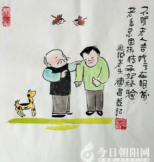 范德昌,今日朝陽網文化信使,1955年生于山東濰坊。山東省美協會員,省漫協理事兼副秘書長。被《漫畫人生》聘為指導老師,《女人觀天下》等多家報刊專欄簽約畫家。事跡和畫作收入《中國人才薈萃》《二十一世紀人才庫》等八本辭書和傳記。40年來,在全國260余家報刊和網站發(fā)表作品6000余件,160多次獲獎,其中《一帆風順》獲“施樂杯”全國漫賽一等獎。多幅作品被韓國、新加坡等國家的書畫愛好者收藏。水墨小品自成一體,被多家新聞單位稱為扎根基層的民俗畫家,被評為“山東省百名讀書人物”和提名“百名文化名人”。退休后,師從著名民俗畫家邢振齡老師學習民俗水墨小品。出版畫集13部。