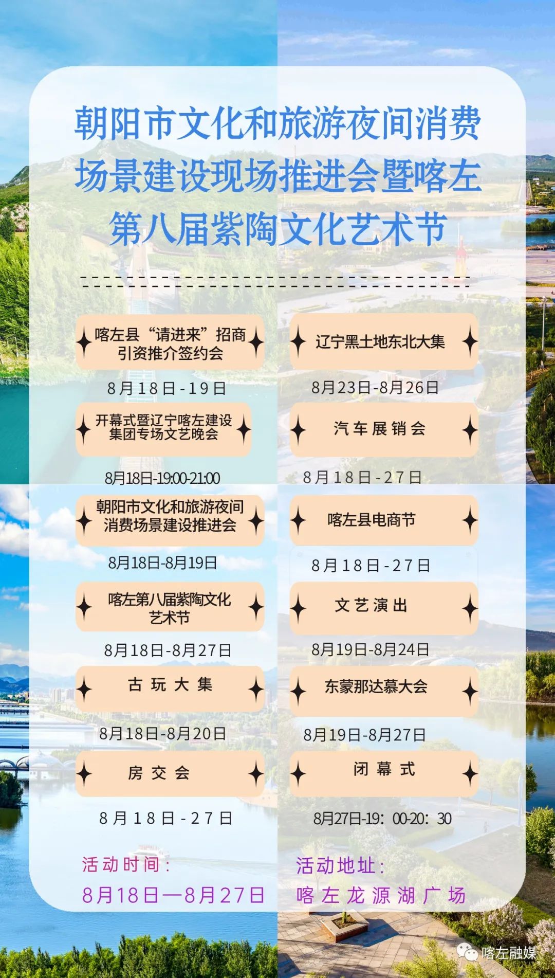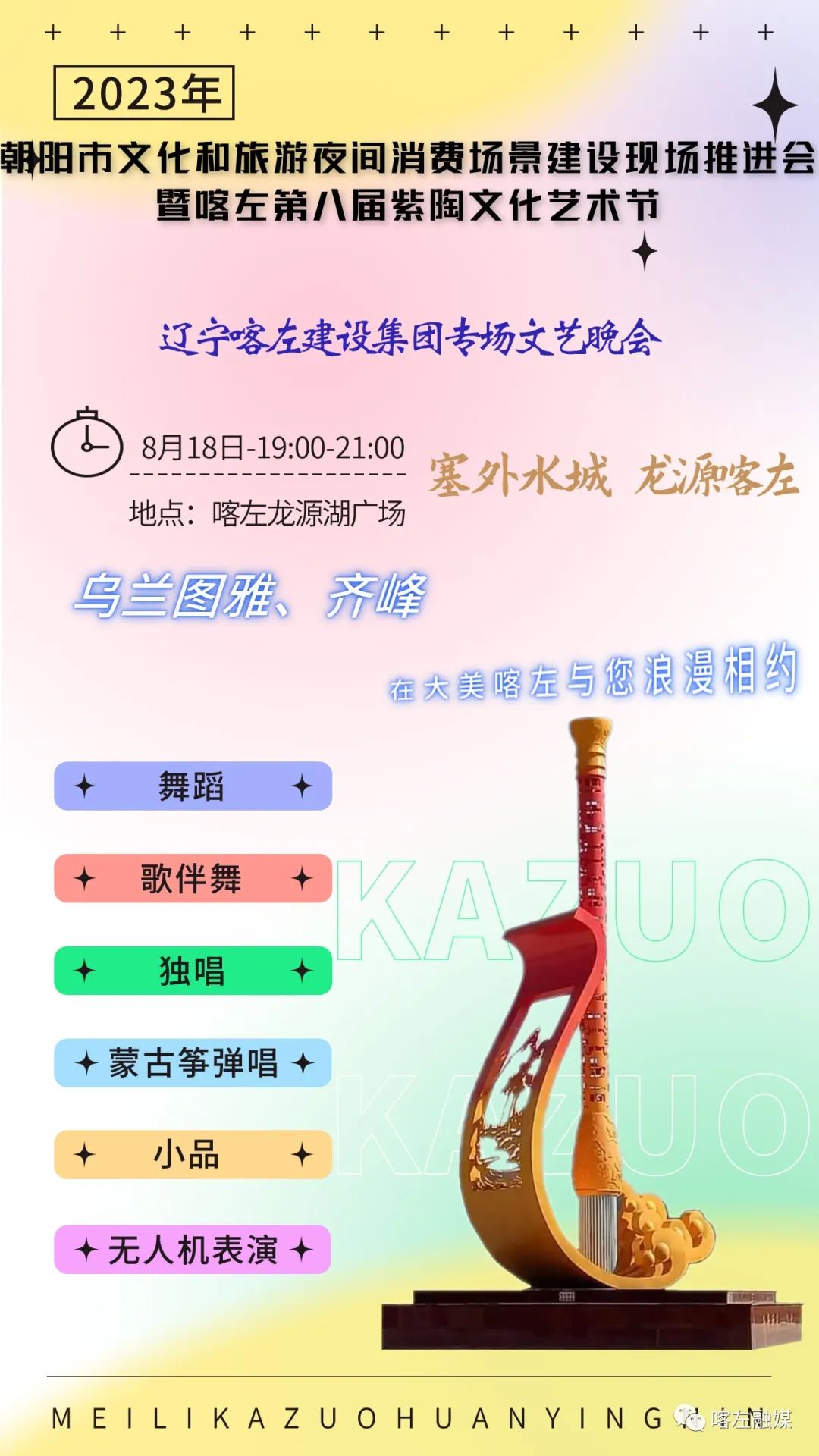 朝陽市文化和旅游夜間消費場景建設(shè)現(xiàn)場推進會暨喀左第八屆紫陶文化藝術(shù)節(jié)8月18日—8月27日舉辦