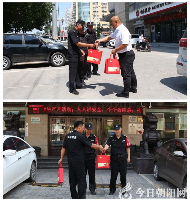 冒著39℃的高溫,朝陽安平集團(tuán)保安部、學(xué)校事業(yè)部、大廈事業(yè)部、醫(yī)院事業(yè)部的有關(guān)負(fù)責(zé)人到朝陽師范高等??茖W(xué)校、朝陽銀行凌賓支行、勞動大廈、朝陽市中心醫(yī)院等單位慰問了堅守在一線的員工,為大家發(fā)放了茶葉、綠豆糕、白糖等防暑降溫物品,把清涼送到了工作一線,把關(guān)懷送到員工的心坎上。