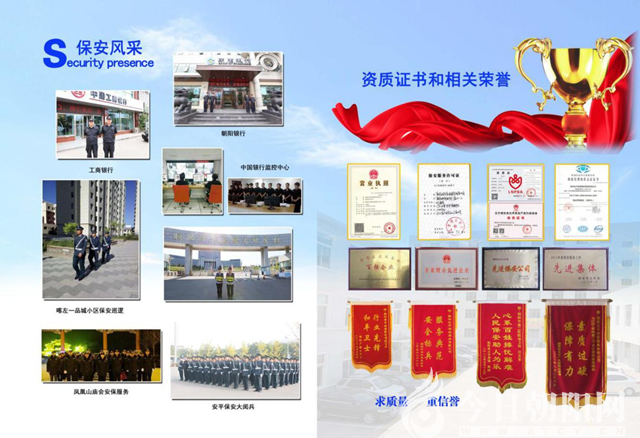據(jù)了解,朝陽安平保安服務(wù)有限公司成立于2010年,是經(jīng)省公安廳批準(zhǔn)、工商行政管理注冊的正規(guī)民營保安公司,連續(xù)三年被評為朝陽市優(yōu)秀保安公司?,F(xiàn)有保安員1600余人,內(nèi)設(shè)3個保安大隊,1個特勤大隊。安平保安公司現(xiàn)服務(wù)的國家機關(guān)、企事業(yè)等單位客戶近百家。