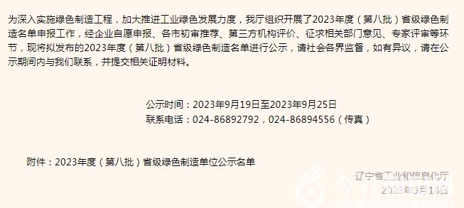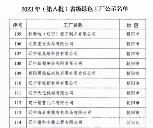 同時(shí),遼寧省財(cái)政廳公布了《2023年度(第八批)省級(jí)綠色制造單位公示名單》,朝陽(yáng)市入選省綠色制造單位公示總數(shù)位列全省第三,創(chuàng)歷史新高。