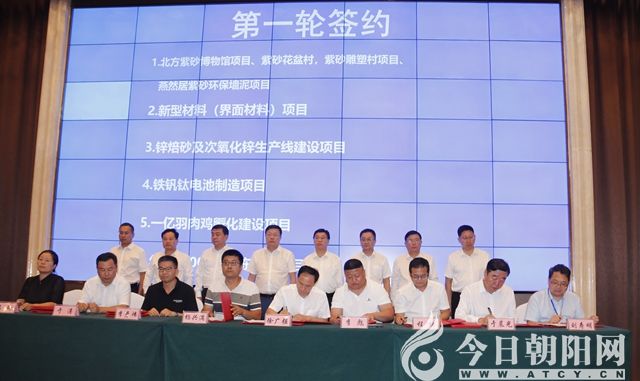 第一輪簽約的6個(gè)項(xiàng)目有:中核澤農(nóng)基金管理有限公司北方紫砂博物館、紫砂花盆村、紫砂雕塑村、燕然居紫砂環(huán)保墻泥項(xiàng)目,深圳特新界面科技有限公司新型材料(界面材料)項(xiàng)目,遼寧恒鋅環(huán)保科技有限公司鋅焙砂及次氧化鋅生產(chǎn)線建設(shè)項(xiàng)目,遼寧潘鐵儲(chǔ)能科技有限公司鐵釩鈦電池制造項(xiàng)目,宏發(fā)牧業(yè)有限公司喀左公司一億羽肉雞孵化建設(shè)項(xiàng)目,遼寧禾順有機(jī)農(nóng)業(yè)科技有限公司年產(chǎn)15000噸速凍蔬菜項(xiàng)目。