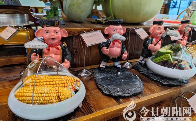 飯店門臉兒不是很大,但裝潢風格顯得簡樸而熱烈,一塊寫有“鄉(xiāng)俗土菜”的黑底金字牌匾高懸門楣,彰顯了飯店的與眾不同。進門后,迎面而來的是擺放得錯落有致的美食樣品。其中,一個數(shù)十斤重的大葫蘆讓人印象深刻。從當下人們講究諧音梗的角度,你自然會悟到“葫蘆”與“福祿”的關(guān)聯(lián),也必然會對這家飯店的名字加深記憶。